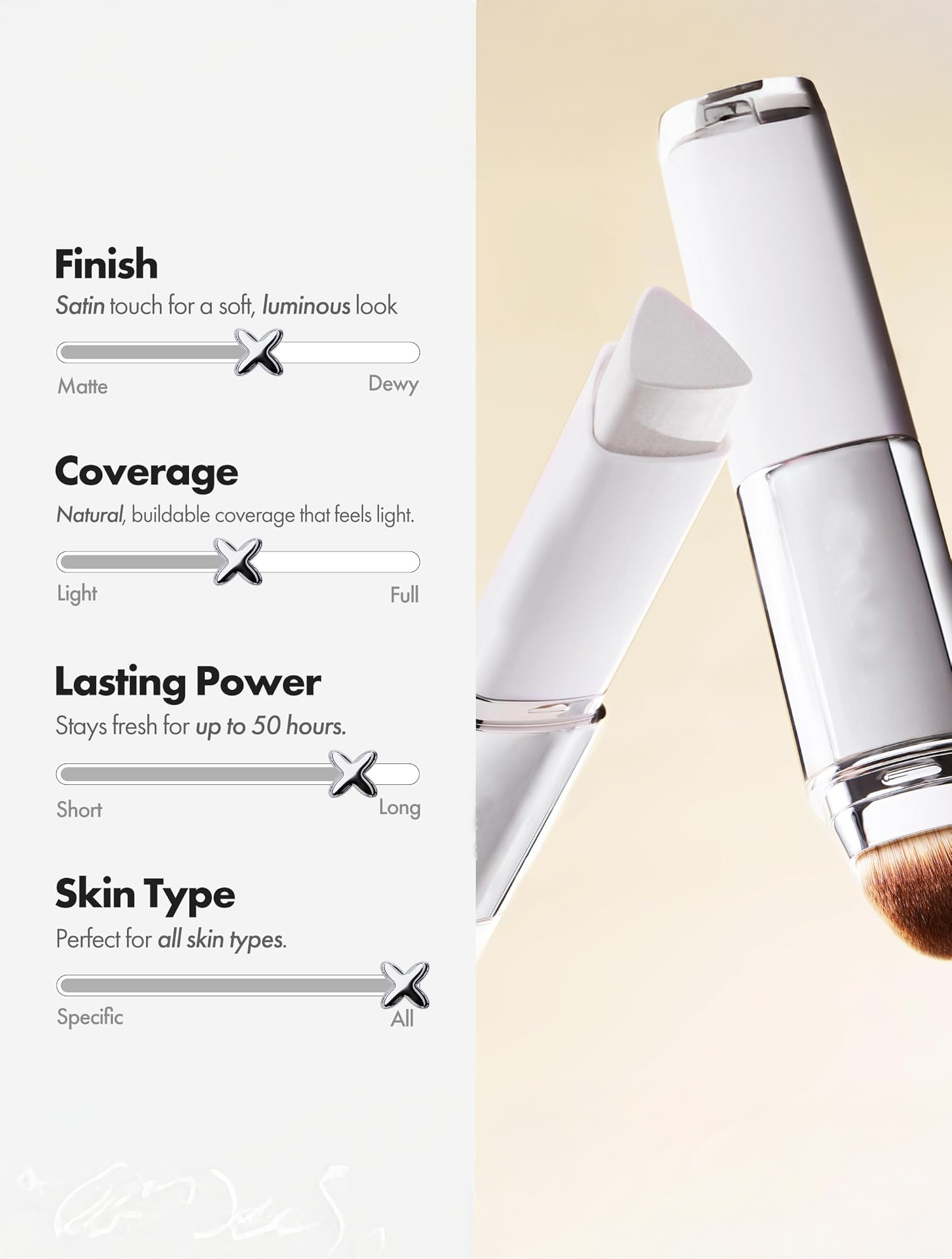 Get instantly matched, effortlessly flawless skin with a dewy, all-day glow—no filters, no fuss.