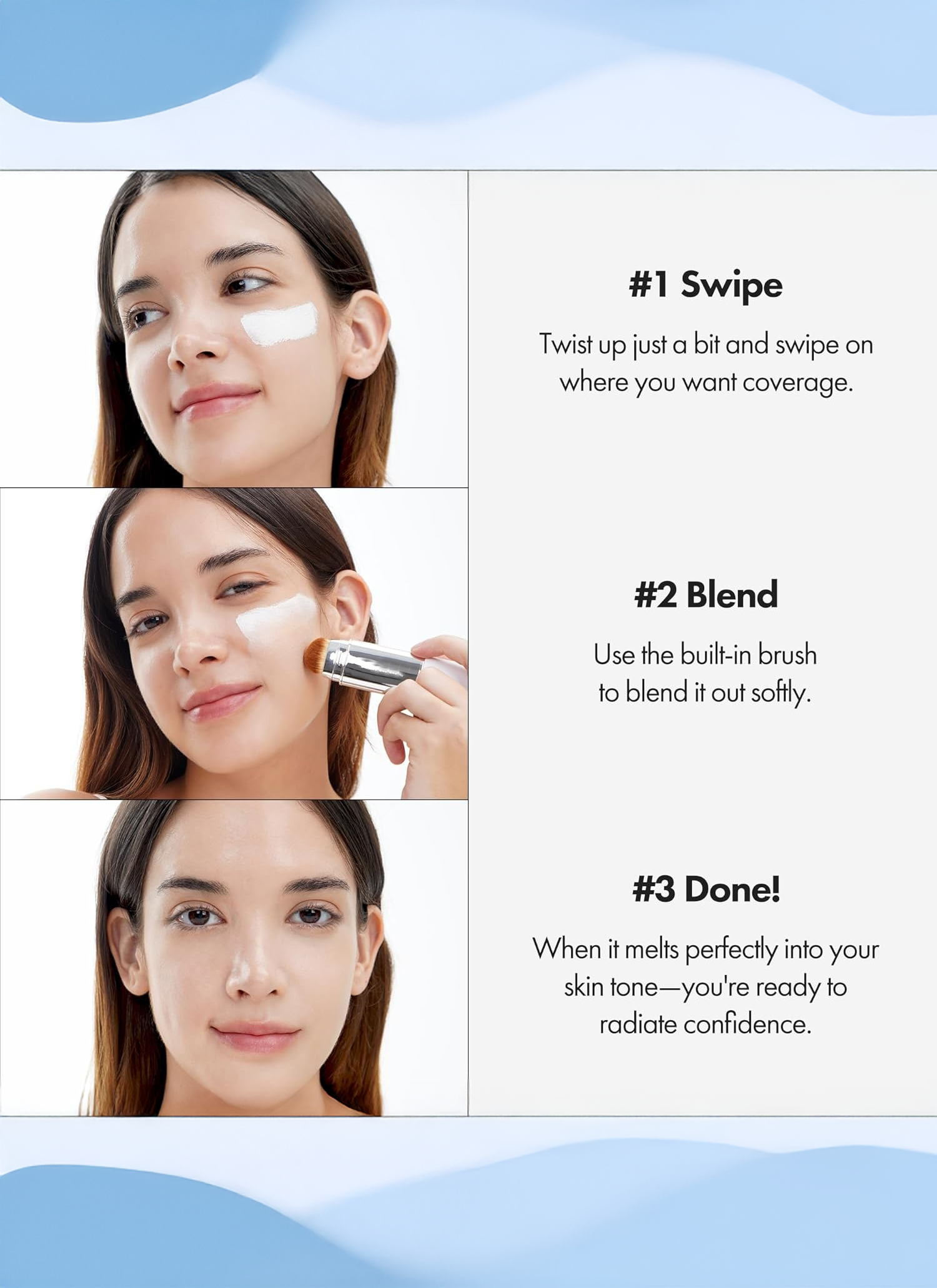 1. Apply: Swipe the foundation stick directly onto your face where coverage is needed.